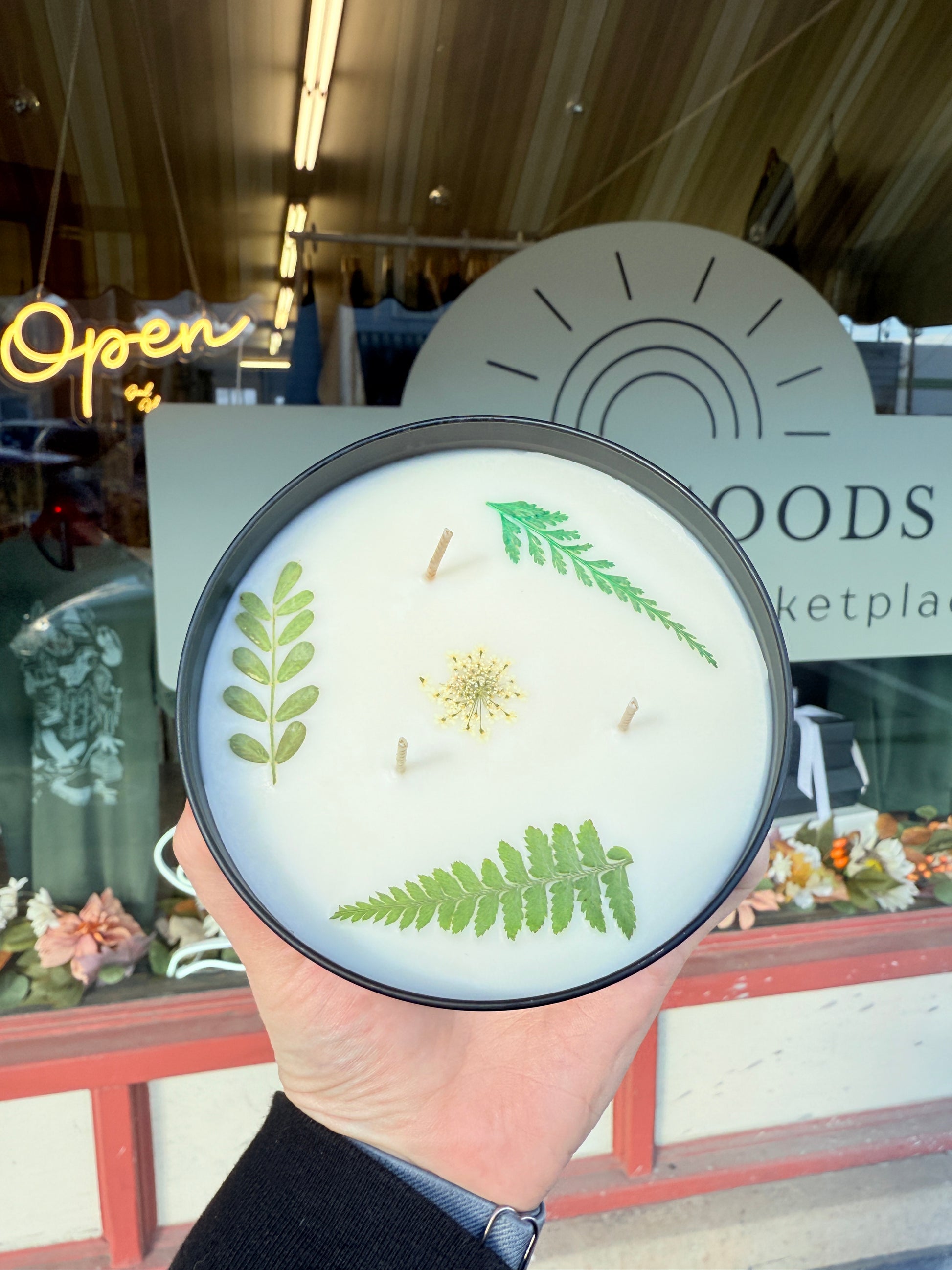 New style! An introductory price of $30 for a limited time! ($34 regular price). 16oz American Grown Soy Wax Candles, handmade with love in store in Nazareth PA. Each one comes with real flowers and leaves that float in the candle wax as the candle burns. Never leave a burning candle unattended.